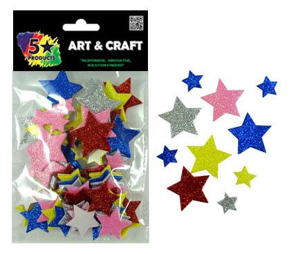 Assorted colours glittered on soft foam with self adhesive backing.