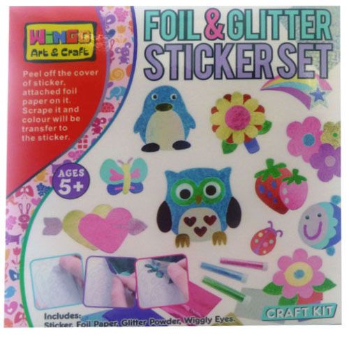 Craft Kit includes stickers foil paper glitter powder and wiggly eyes.