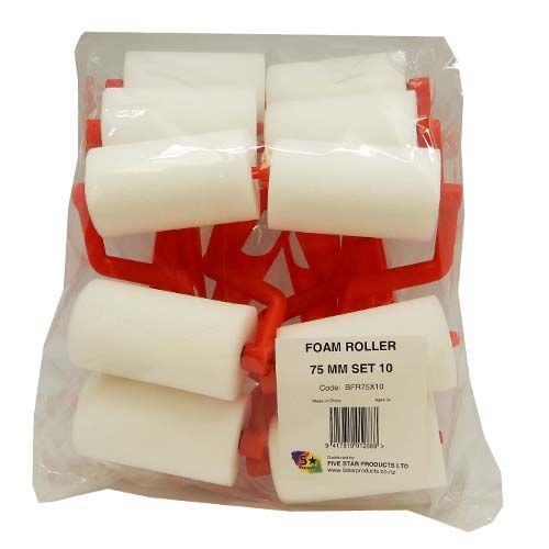 Easy to use polyester foam rollers with a moulded plastic handle. Ideal for covering large areas quickly. Gives a smooth and even finish without leaving marks. For all levels of artists using water based products. Pack of 10.