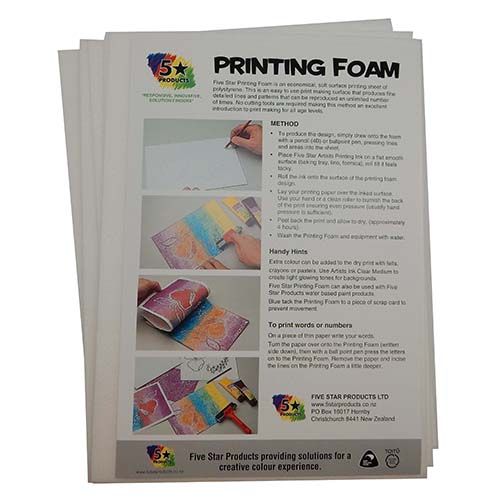 Economical soft surface printing sheet of polystyrene. Easy to use for water based printing ink textile inks and water based paints. Produces fine detailed lines and patterns which can be reproduced an unlimited number of times. No cutting tools required simply score the surface with a pointed pencil or similar. Excellent introduction to print making for the younger age group.