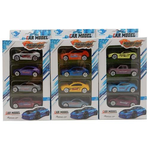 Each set includes 4 different cars. There are 3 assorted sets in this series.