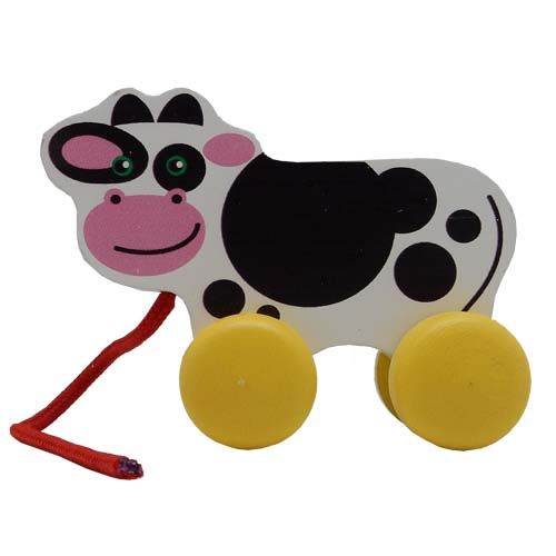 ELF WOODEN PULL ALONG COW
