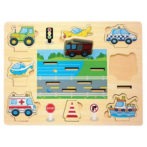 Wooden puzzle to build a stand-up 3D picture. Stand the eight colourful pieces in the slots to create your picture. Create a different picture each time as they are interchangeable. Great for imaginative play, hand eye coordination and problem solving. Size 30x22.5x0.8cm.