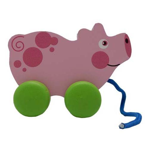ELF WOODEN PULL ALONG PIG