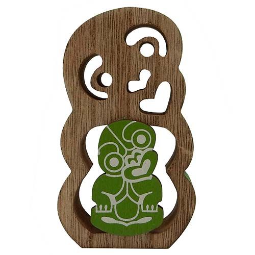 A unique wooden souvenir of the Maori Tiki. Designed in New Zealand. Size: 12cm x 7cm