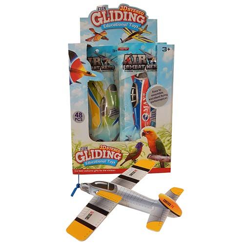 Easy to assemble Glider Plane. 19cm long. Assorted designs. 48 in a display box.