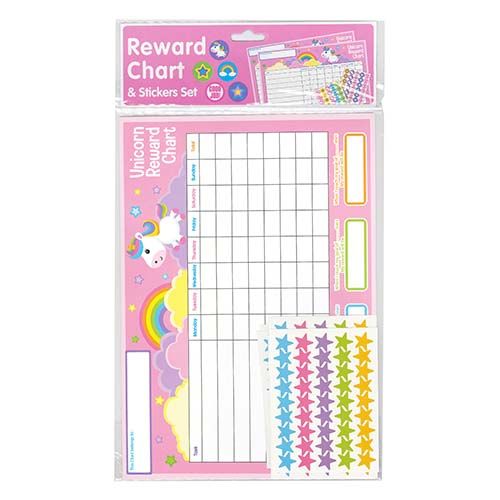 A4 size reward chart with lots of coloured stars and reward stickers per pack with a unicorn theme.