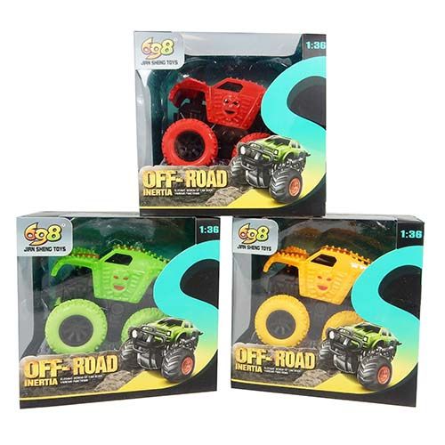 Pullback friction action. 2 different styles in 3 assorted colours. Red, green and yellow. Bodies can be interchanged. Box measures 13w x 12.5h x 10.5d cm.