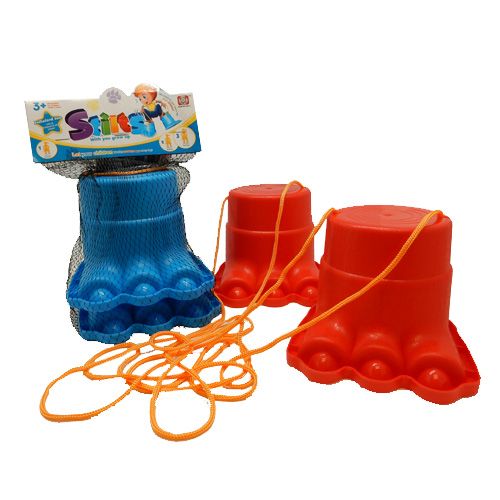 Stand on the Big Feet Stilts and pull the ropes up tight to walk like a giant. 70 cm ropes.