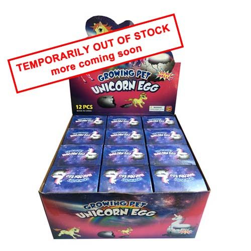 6 cm egg. Place in water and watch your unicorn hatch and grow. Sold in full display's only minimum order of 12.
