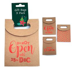 XMAS GIFT BAGS KRAFT W RED 3PC