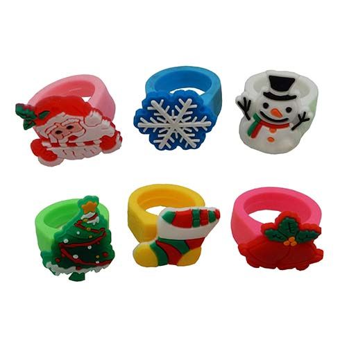 Cute designs in soft flexible rings suitable for any size finger. 72 in a display box. 6 assorted designs.