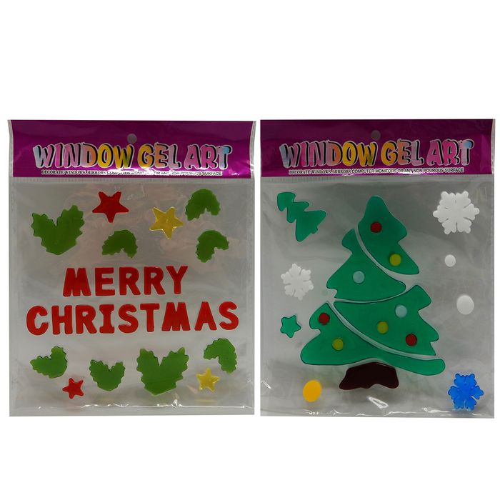 XMAS WINDOW GEL DECOR 20X20CM 2 ASST