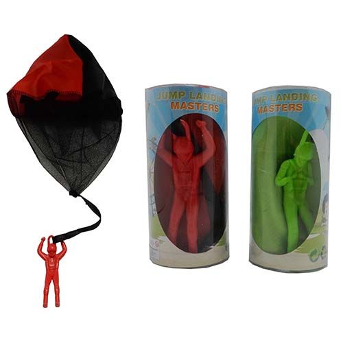 Mini paratroopers with parachutes. Throw them up and watch them float down. 6 colours. 24 in a display box.