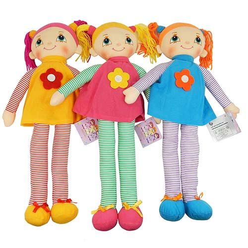 These soft cuddly dolls rag dolls are 50cm long and come in 3 colour ways. Sold assorted only.