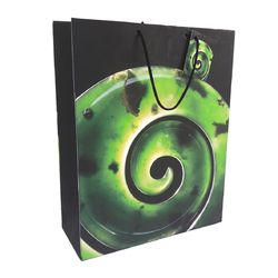 Featuring a close up of a koru shaped pounamu pendant, the wonderful translucent qualities of the greenstone are displayed. Size: 26.5 cm x 33cm x 11.4cm
