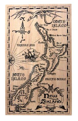 POSTCARD WOODEN MIDDLE EARTH NZ MAP