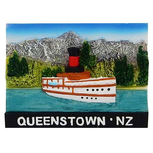 A great memento to remember Queenstown and the iconic Earnslaw. This design can also sit freestanding in addition to being a magnet. Made from poly resin and is hand painted. Size: 6x5 cm.