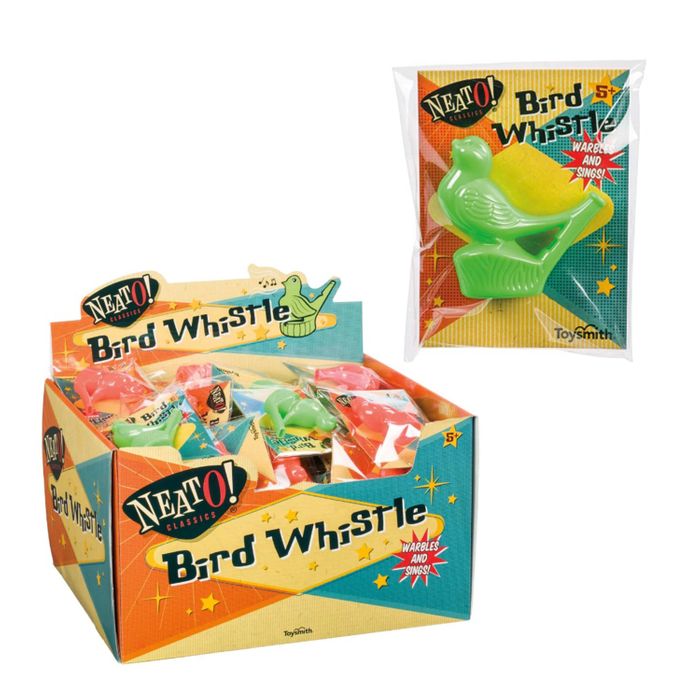 Tweet, chirp, and whistle your way to delight with our novelty bird call whistle! This whimsical little gadget is not just a whistle; it's a feathered friend ready to serenade you with its charming bird-like tunes. 2 assorted colours: Green and Red. 60 per display