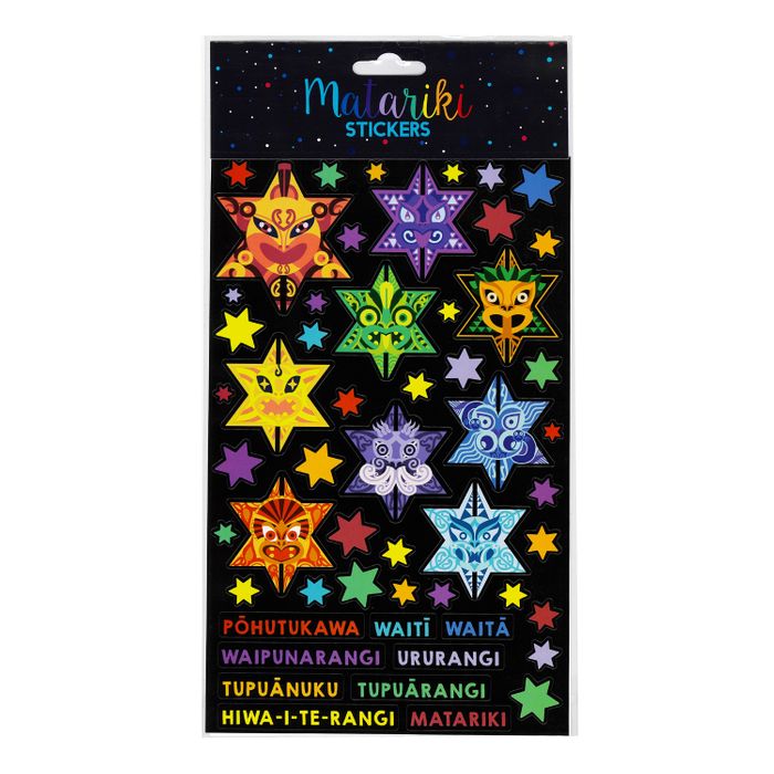 Decorate your artwork, notebooks, or anything you’d like with these Matariki star stickers. This sticker sheet comes with 9 unique star designs that represent the stars of Matariki, the names of the stars, and smaller star stickers. Stick them anywhere you’d like. The sheet size is 170 x 275mm.