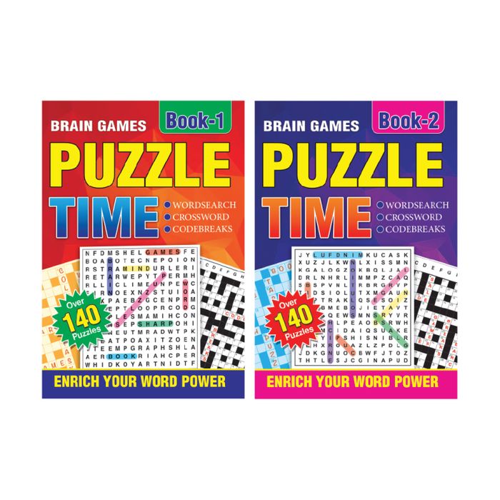 Two assorted brain game puzzle books including over 140 puzzles. Each book contains word searches, crosswords and code breaks. Perfect for keeping your mind active and enhancing problem solving skills.