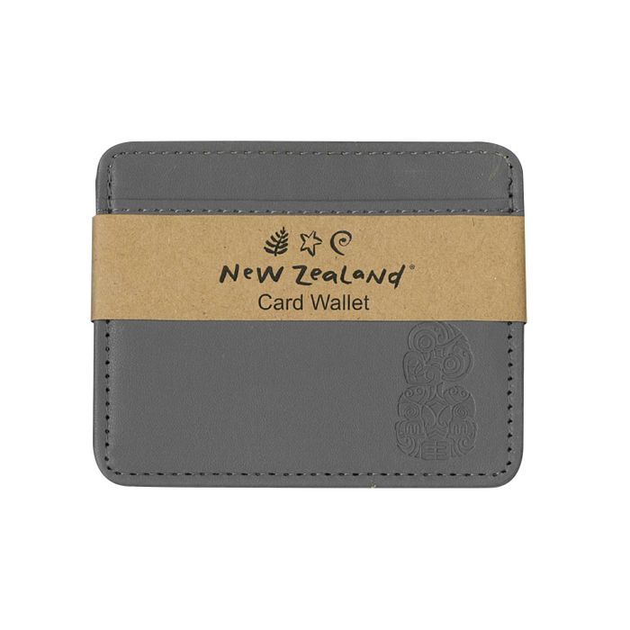 A stylish charcoal grey card wallet featuring a small embossed tiki design. This handy wallet can hold up to 3 cards or more and even has space for cash or extra cards if needed. Includes 4 main card slots & 1 top slot for cash. Includes 4 main card slots & 1 top slot for cash.