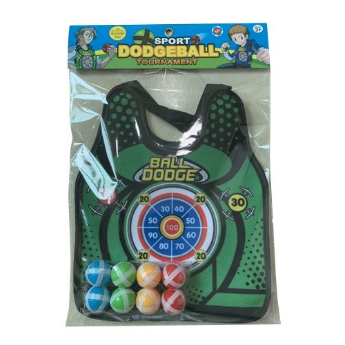 Super fun game for 2 players. Put on a vest each and throw velcro balls to hit each others target. Vests have adjustable elastic straps to fit all ages. Ages 3+