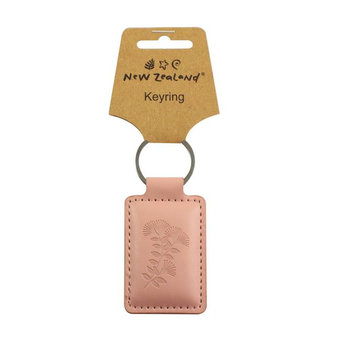 A pastel pink PU leather keyring with a debossed pÅhutukawa design. The perfect keyring accessory.