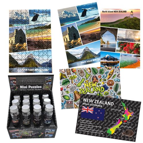 These mini puzzles are for adults and come in a sturdy plastic test tube. Each puzzle is made of 150 tiny pieces making them a good challenge to complete. Great to activity while on holiday, or take home as a gift. You could even frame it when finished. All designed in New Zealand. Display of 12 with 4 different designs.