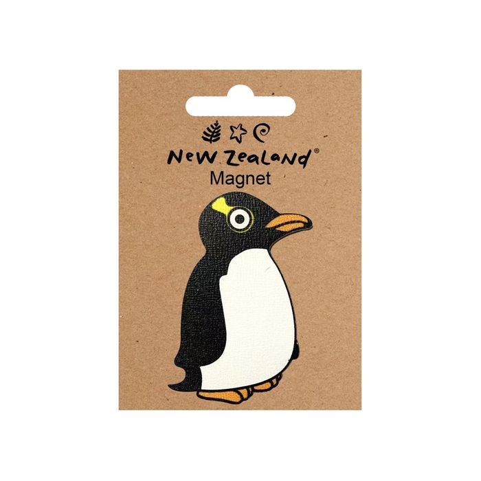 A wooden, yellow eyed New Zealand Penguin magnet. Size: 6.3 cm x 3.5 cm x 3 mm thick
