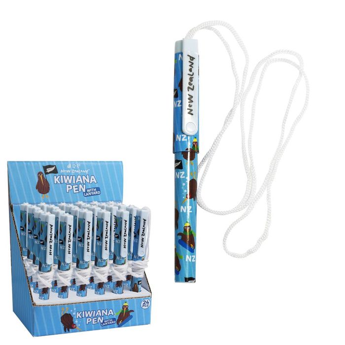 A playful kiwana pen! This pen has a string lanyard for easy carrying, perfect for on the go activities. Display of 24.