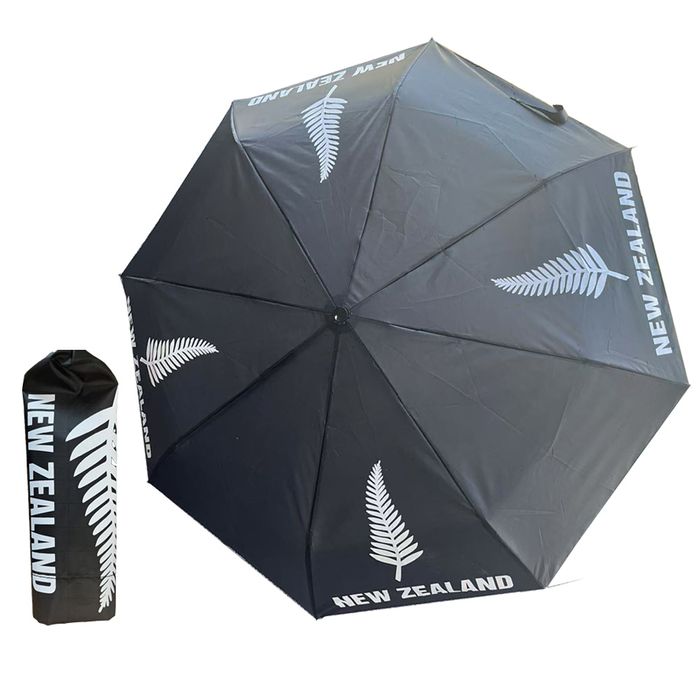 A sturdy 8 panel metal and fibreglass frame umbrella with a 1 metre canopy. Folds down to a compact size. Printed on 4 panels and comes with a printed cover and hand strap. Practical souvenir item and great for kiwi's to have on hand.