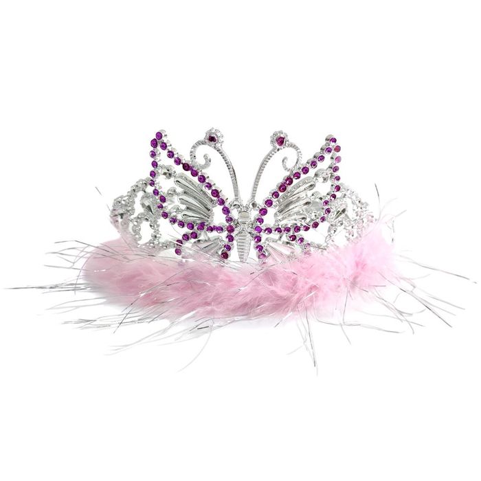 - TIARA BUTTERFLY WITH PINK FEATHERS