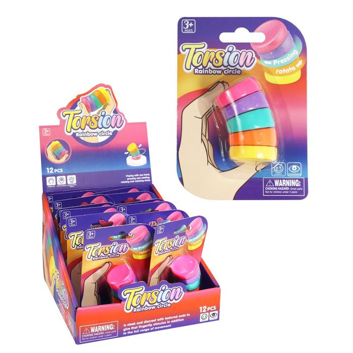 Twist and rotate your way to calming fun with this engaging 5cm fidget tool. The torsion rainbow circle is designed to keep your hands busy and your mind focused. 12 per display. Ages 3+