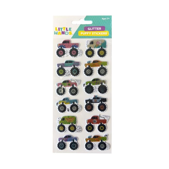 Puffy Glitter Monster Truck stickers 12 per sheet - Ages 3+