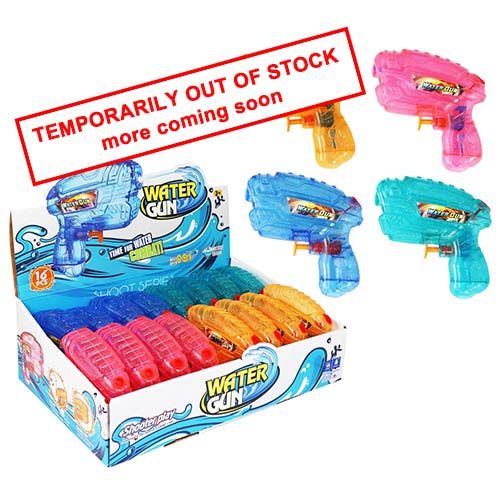 Gear up for epic water gun playtime! This perfectly handheld blaster is ideal for backyard battles, poolside fun, and endless splashes. Suitable for ages 3+. 16 per display.