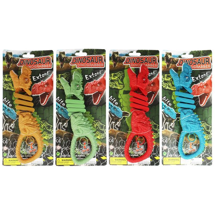 Prehistoric dinosaur grabbers! Pull the trigger to expand the dino mouth to grab anything out of reach. Orange, Green, Blue and Red