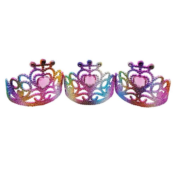 - TIARA RAINBOW W/PINK GEM HEART ASST