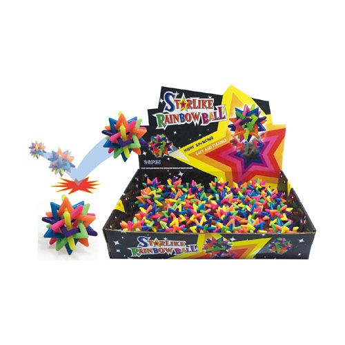 Ball in a star shape in rainbow colours. 24 in a display box.