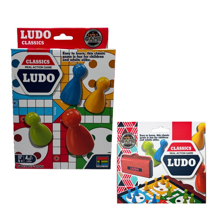 The classic game of Ludo for 2-4 players. This classic family game has a sturdy fold out game board, 16 counters, 1 dice and instructions. Box size 148x215x45mm. Ages 4+.