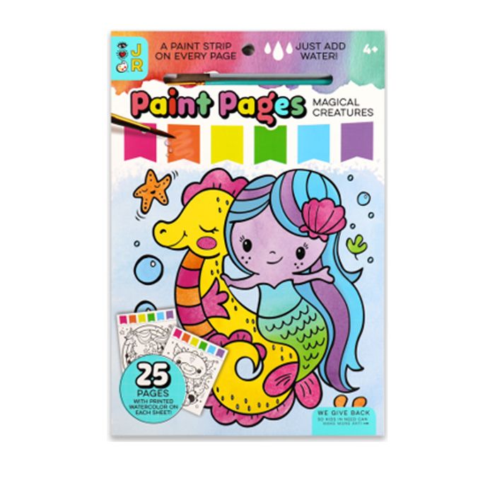 Beautifully presented, mess free tear off pages so kids can make the most out of art! Just add water to the brush provided and paint the pictures with the paint strip on each page.